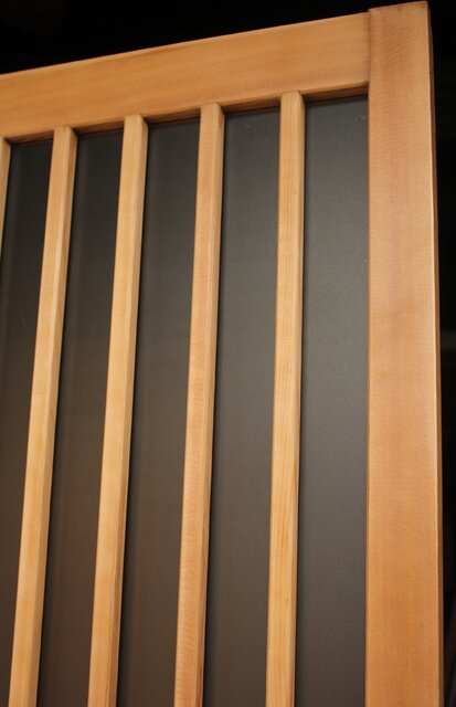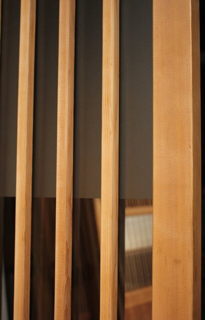 ザックリとした格子の背面には大きなクリアガラス