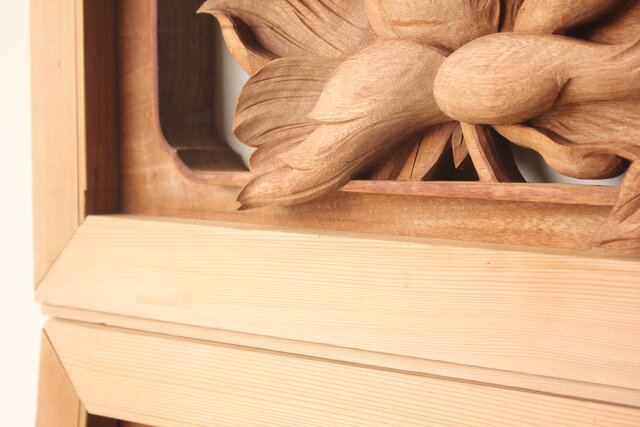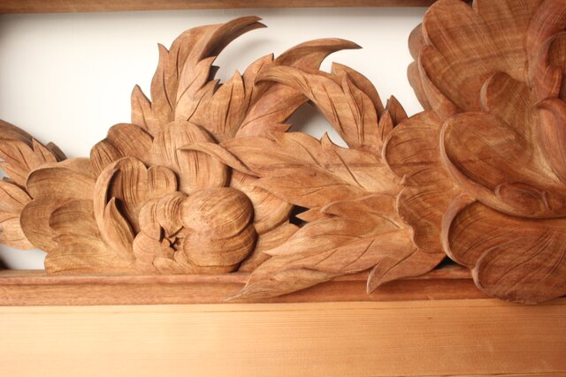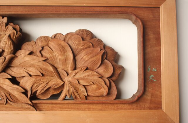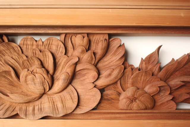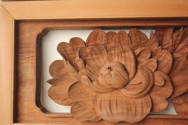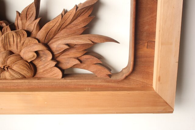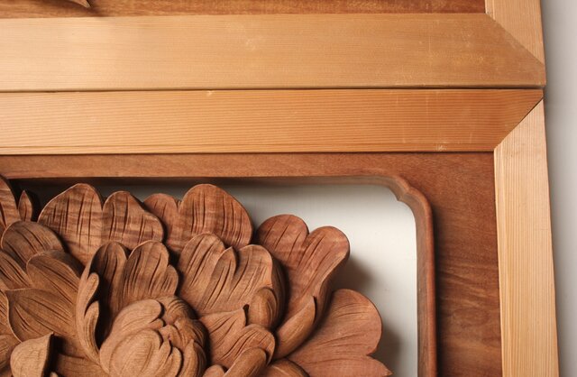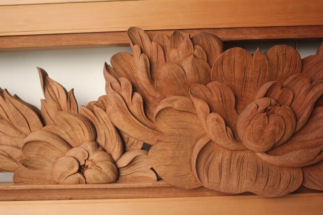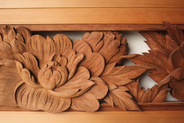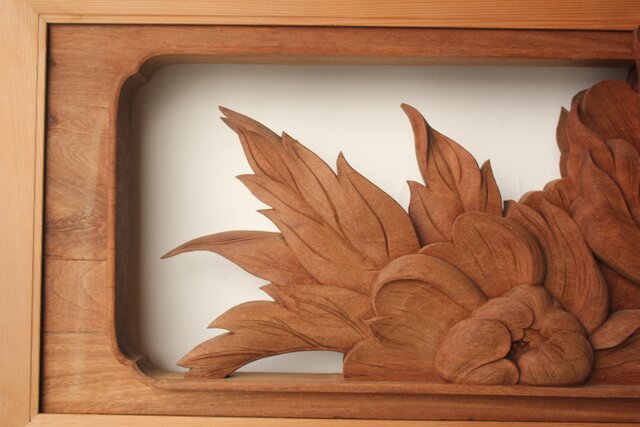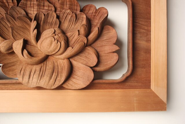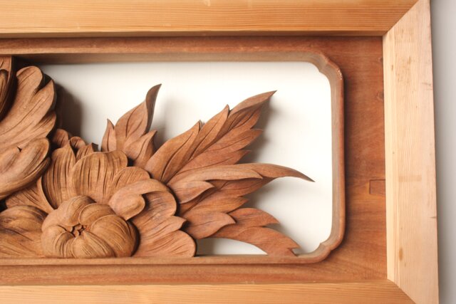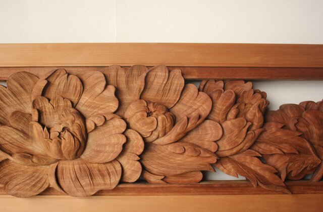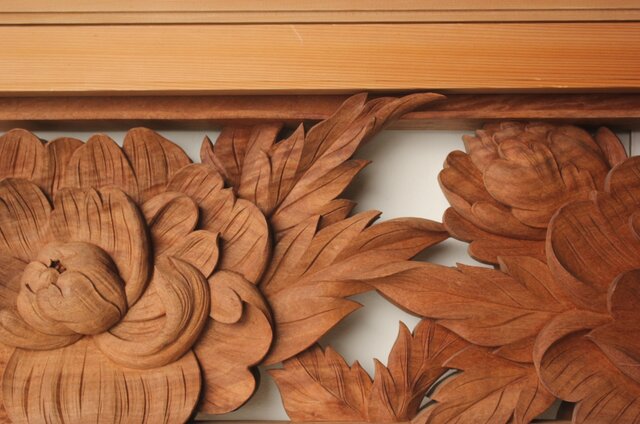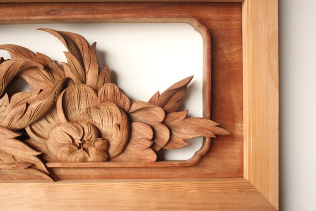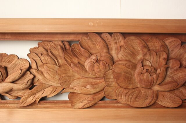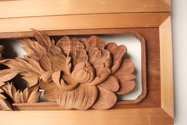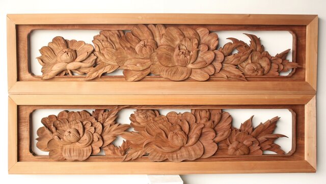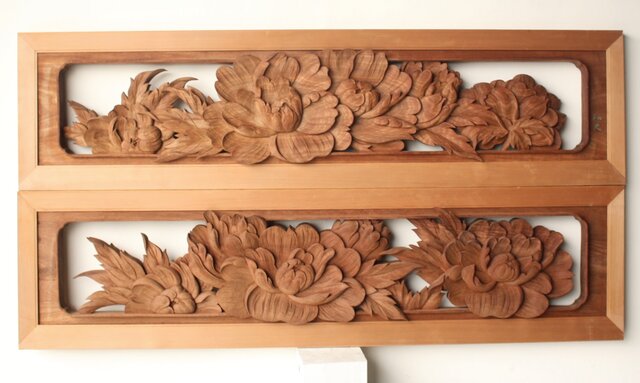 川原和夫 牡丹 木彫欄間 2枚1組 R0566