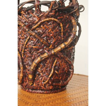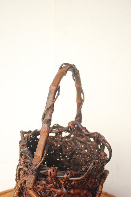 太かったり細かったり様々な表情の竹を編み込んだ意欲的な作品です
