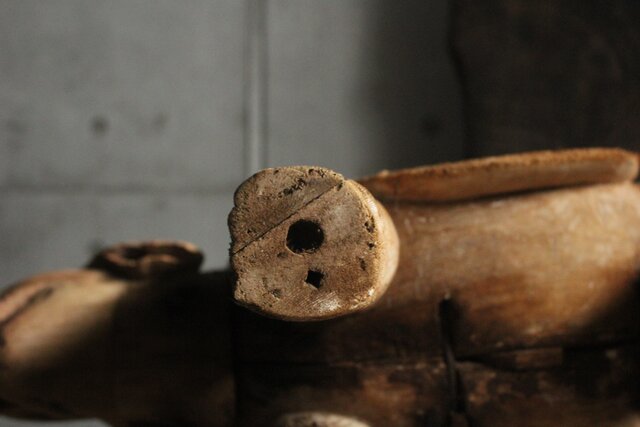 胡粉などがわずかに確認できますが 現在は木の肌が露出しています