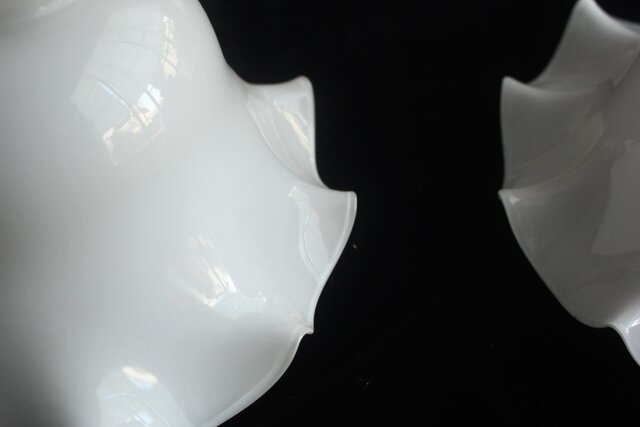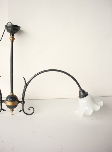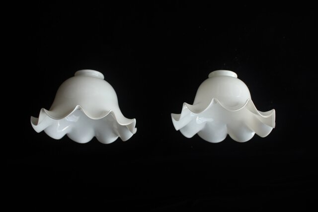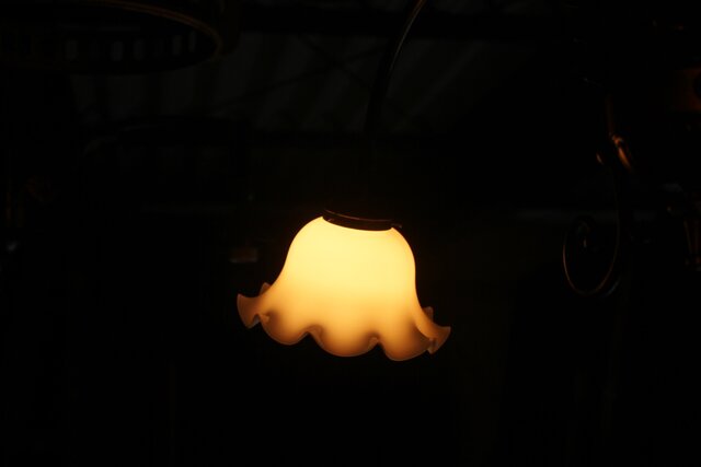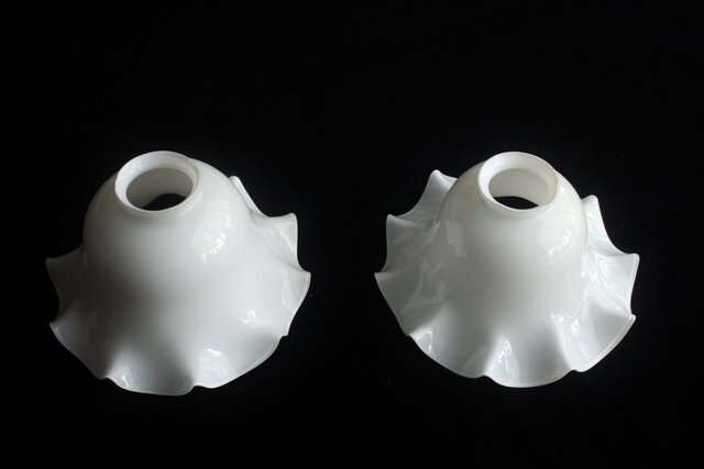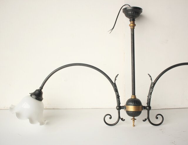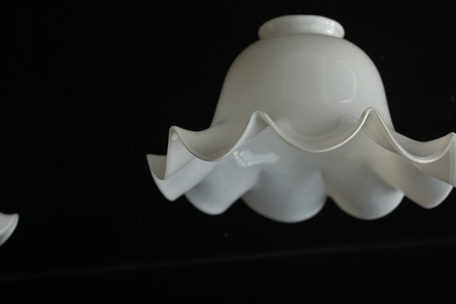 ひらひらの乳白色のシェードがとてもよく似合う2灯