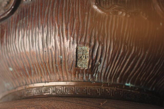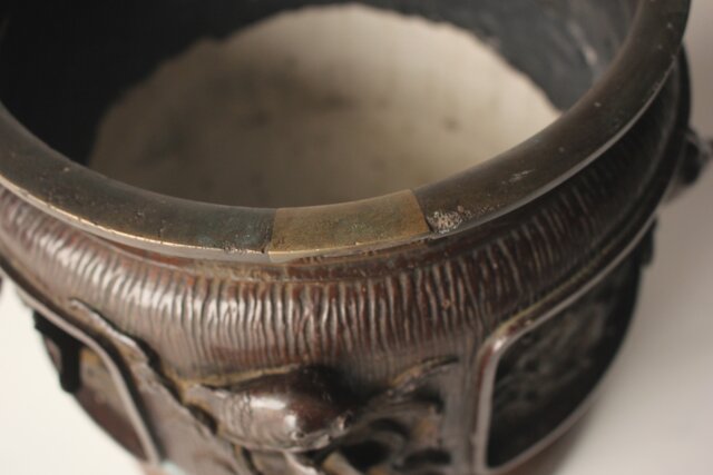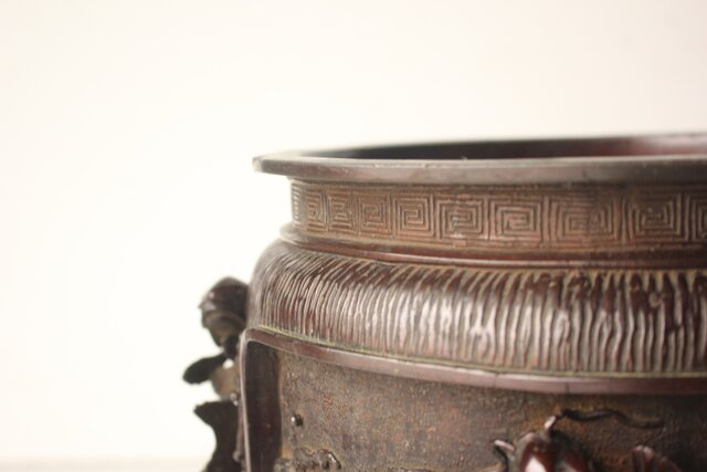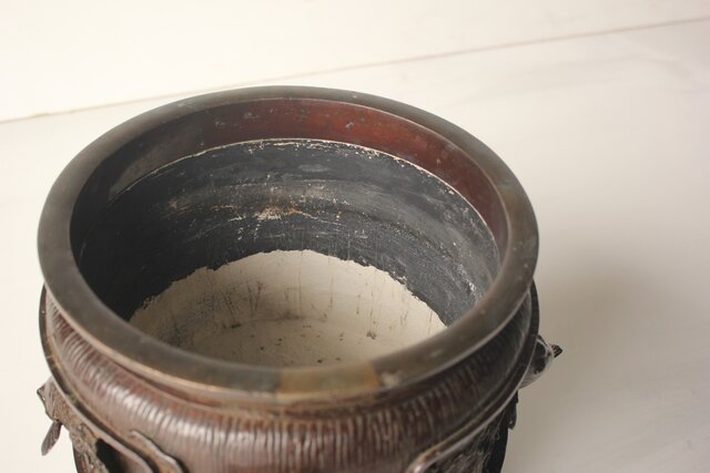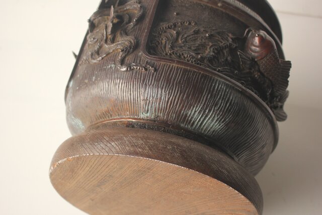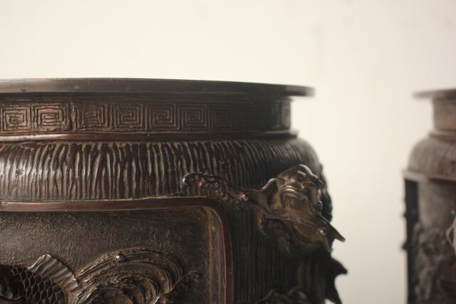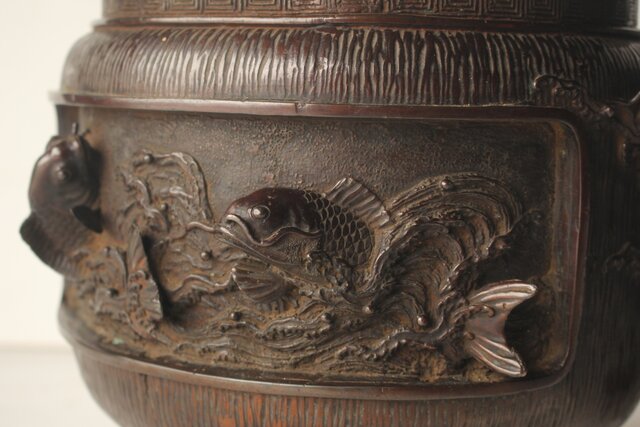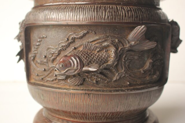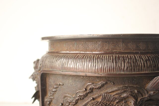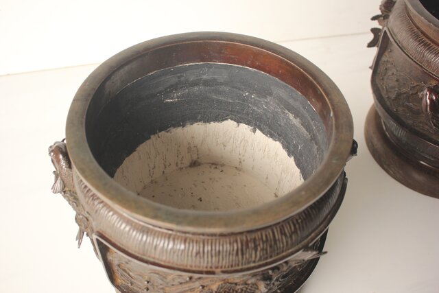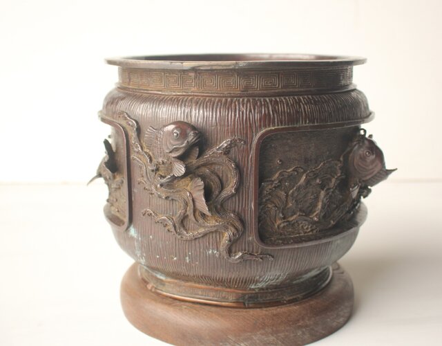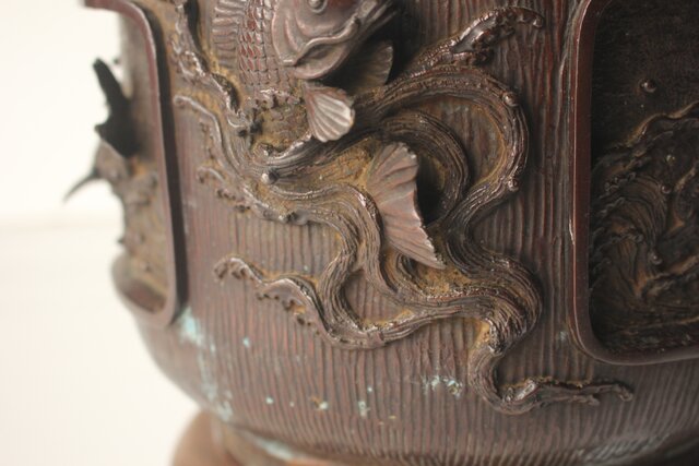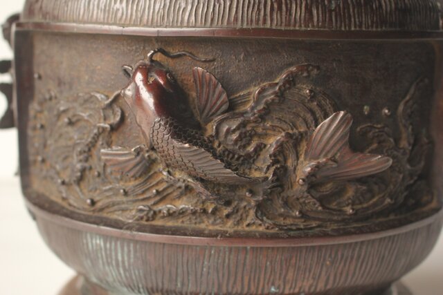 翠松亭梅や造 鋳造 鯉 銅火鉢一対 M493
