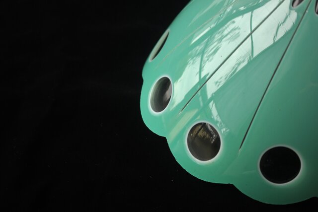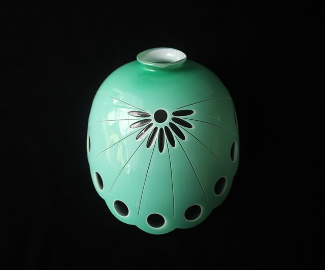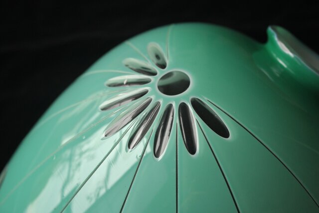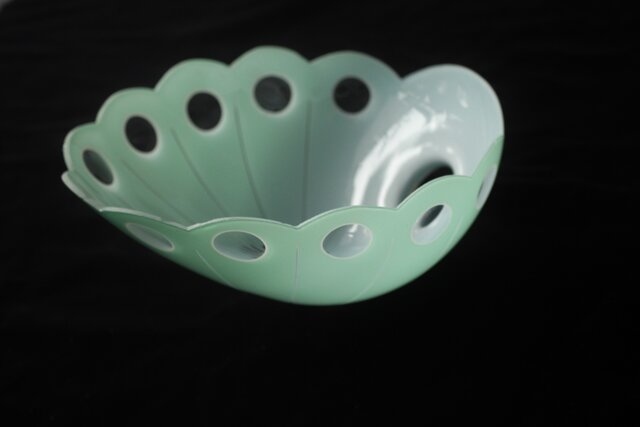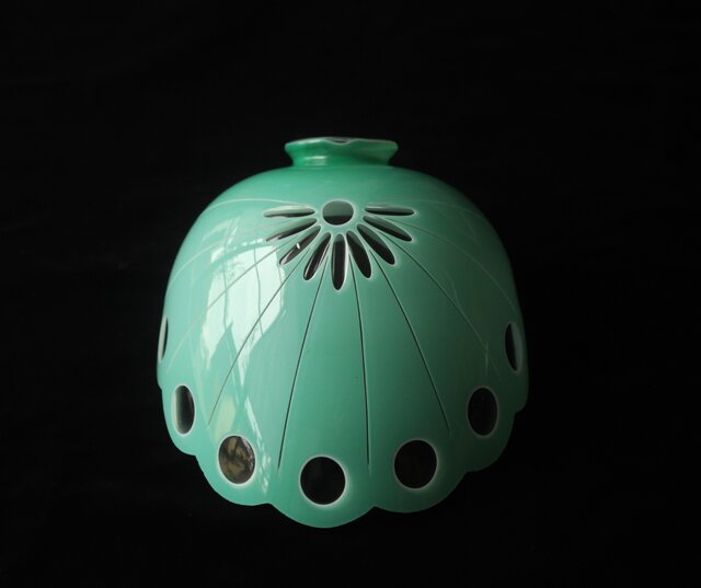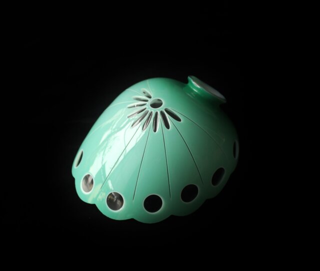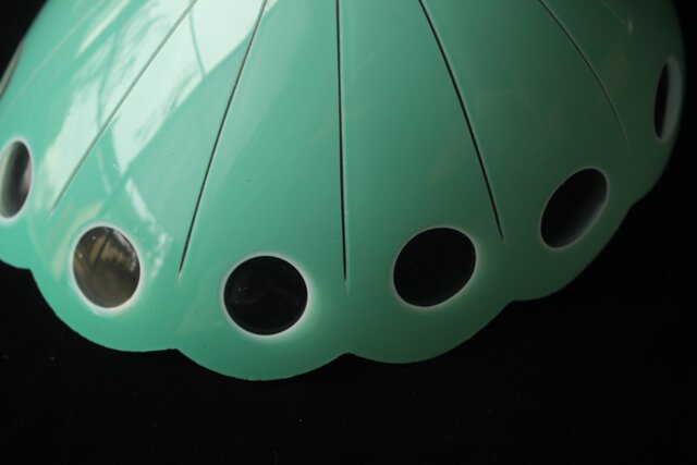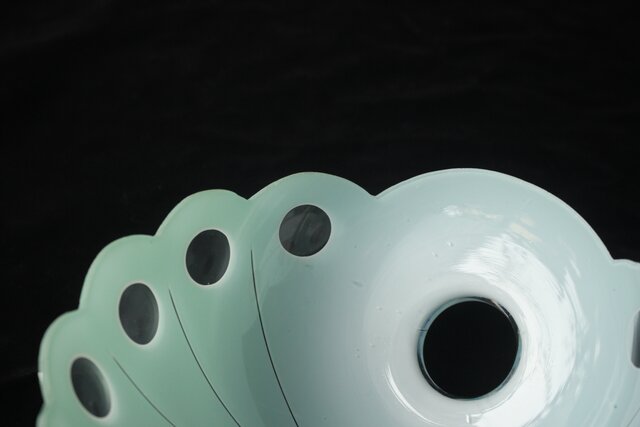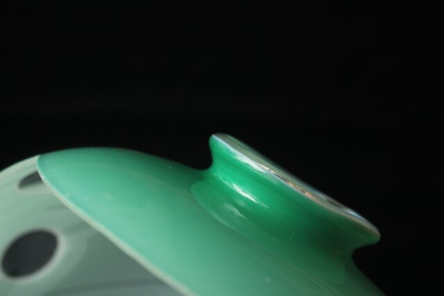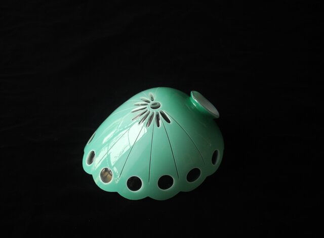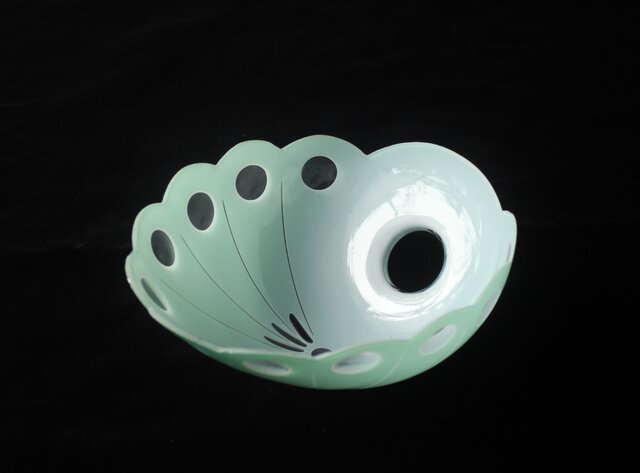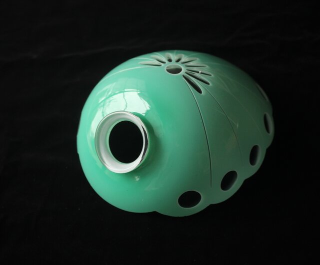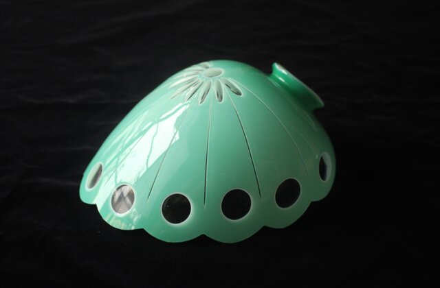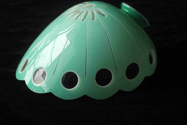 緑色切子 変形兜型傘 電笠 A0570