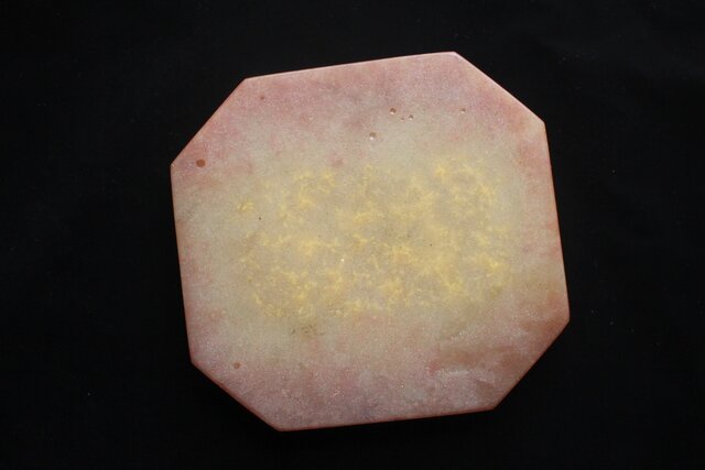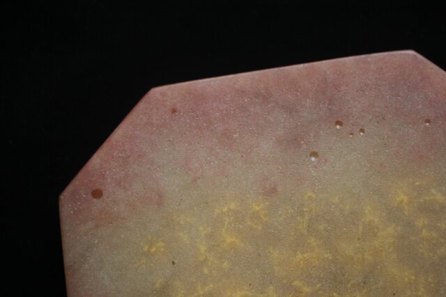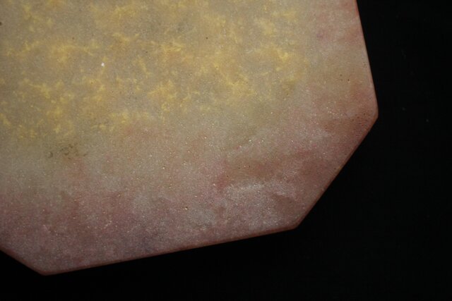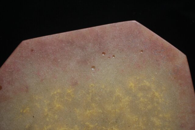 色ガラスを粉末にし耐火性の型に入れ その型ごと窯の中で焼き上げるという