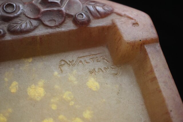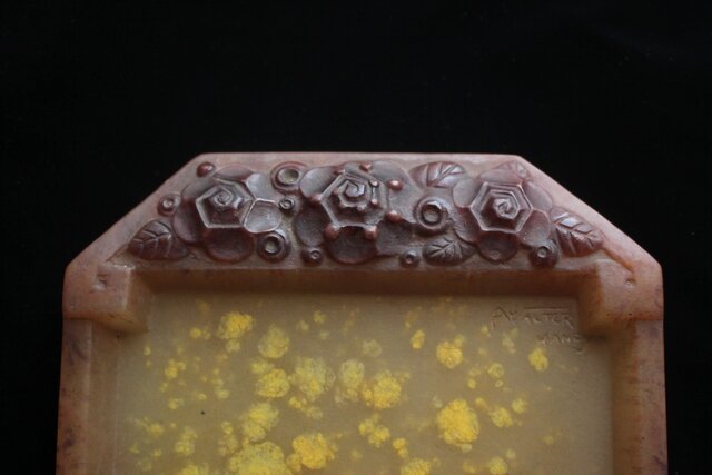 Almeric Walter ワルターガラス 薔薇文トレイ Y074