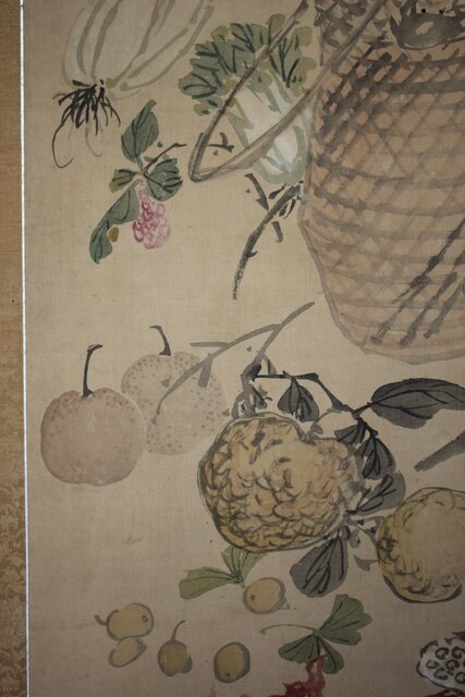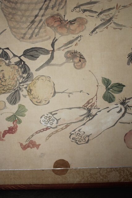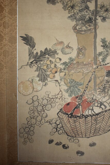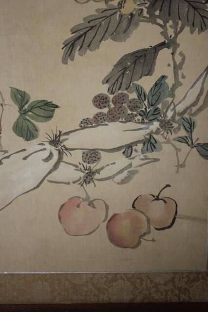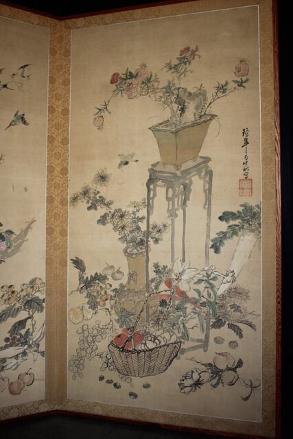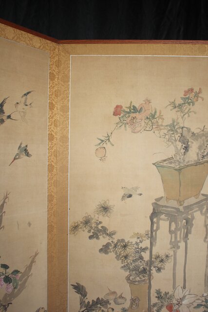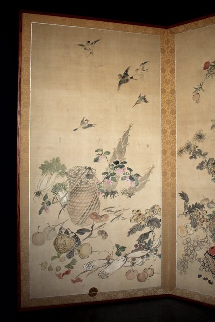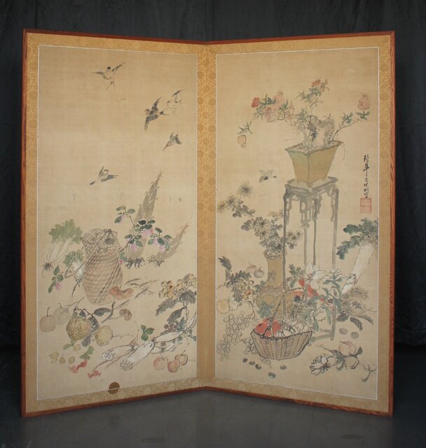 松岡環翠 花鳥果菜図 屏風 Z967