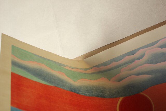 作品の一部が 軽く糊付けされ固定されています 額装の際は取れるくらいの仕様だと思います
