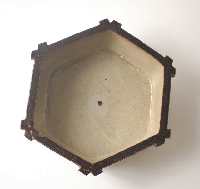 出雲焼 楽山窯 九代長岡空味 十代長岡空處 合作 六角飴釉鉢 P530