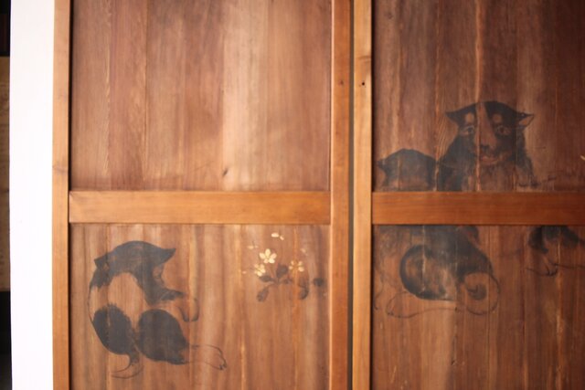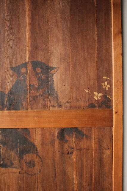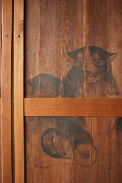 可愛らしい犬の絵を描いた帯戸