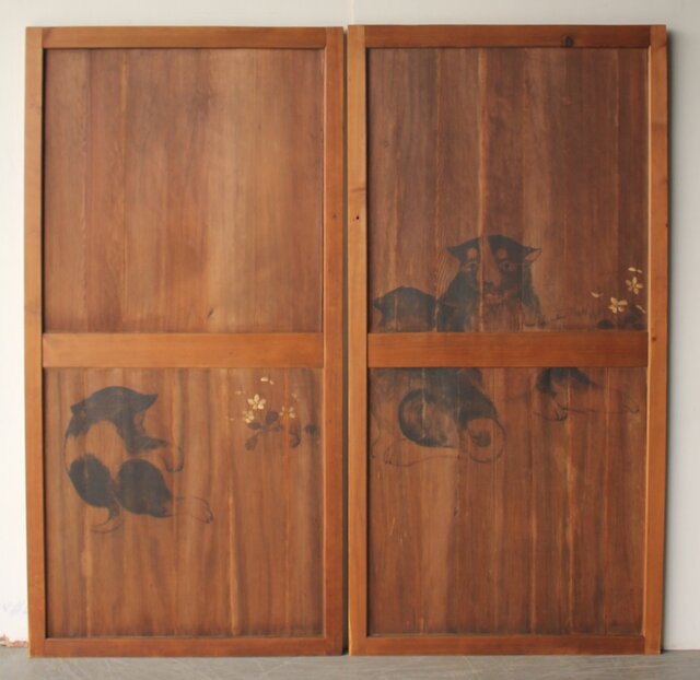 板絵建具 犬図 2枚1組 B1130