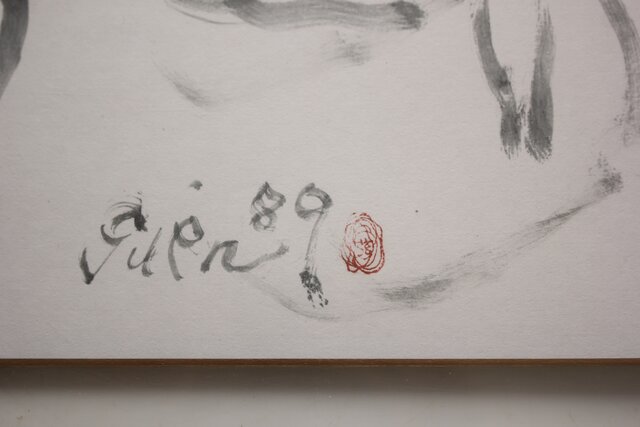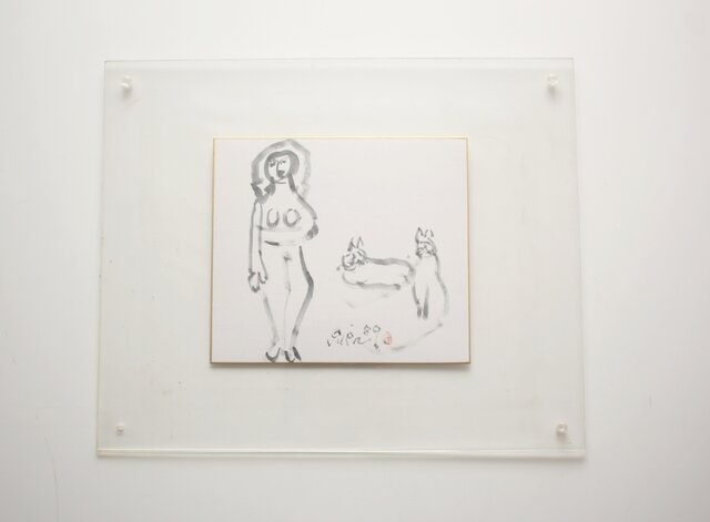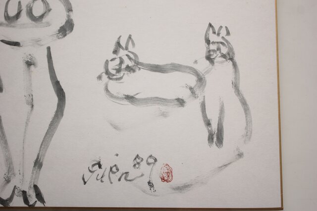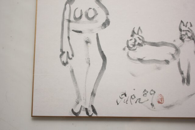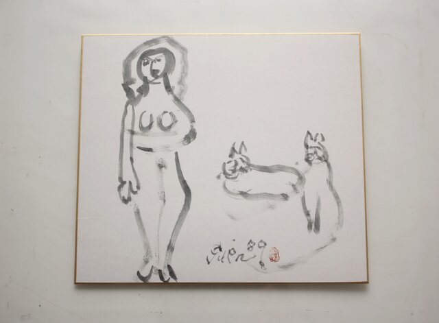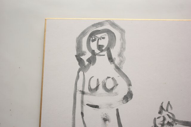 猪熊弦一郎 墨絵 裸婦と猫 色紙 Z986