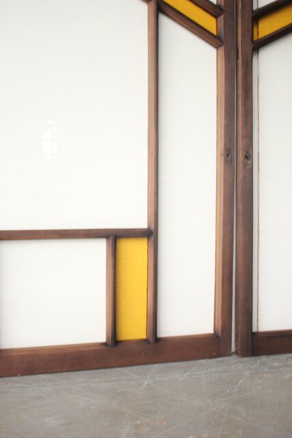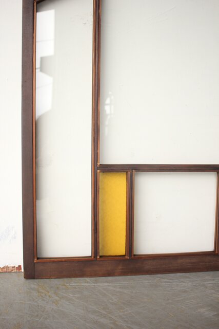黄色の石目ガラスとすっきりとしたクリアガラスで構成