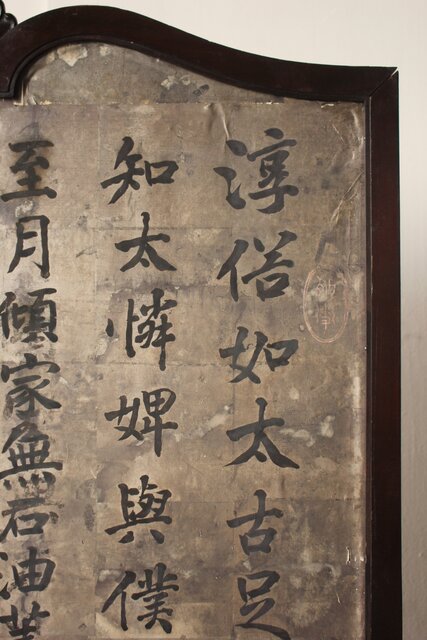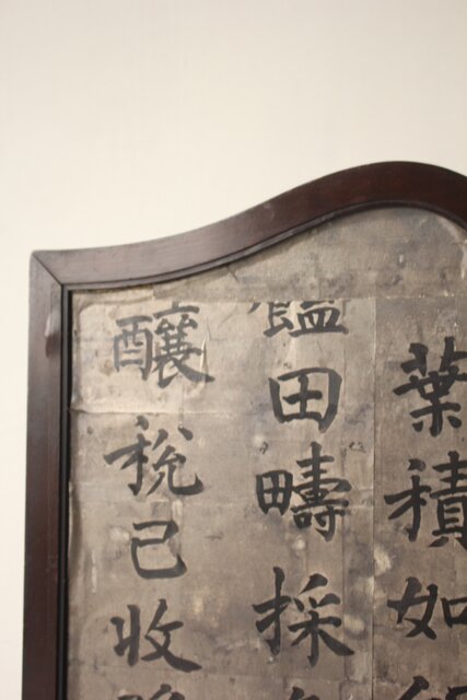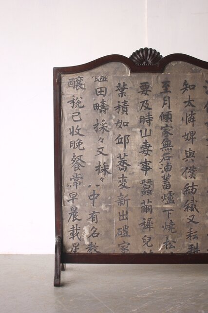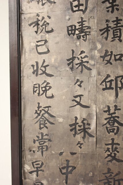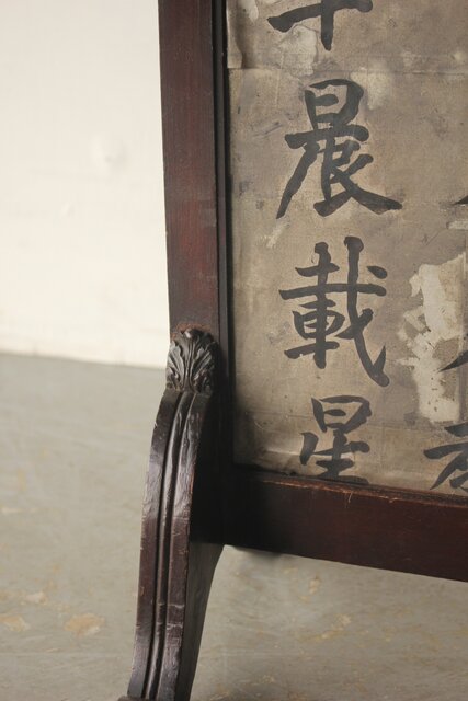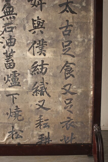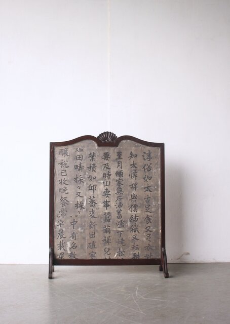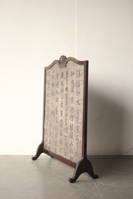 銀地の漢詩を張り付けた 洋物の衝立