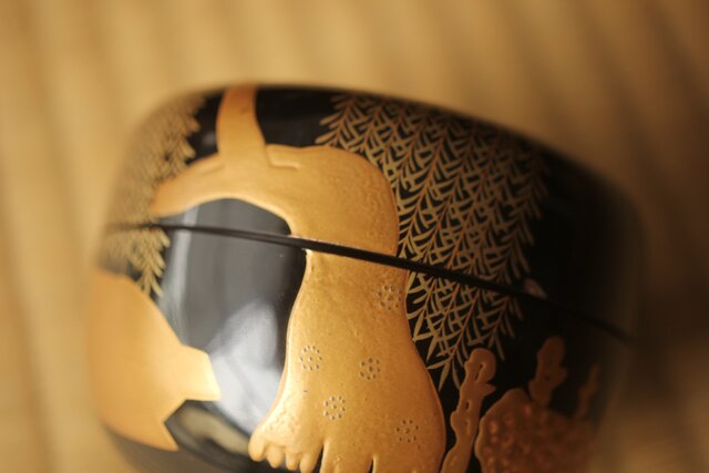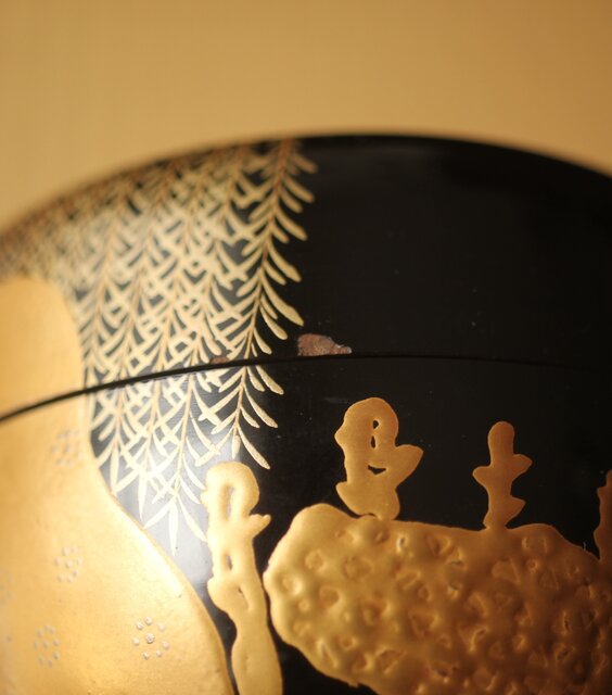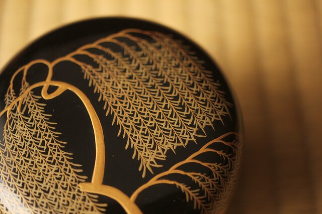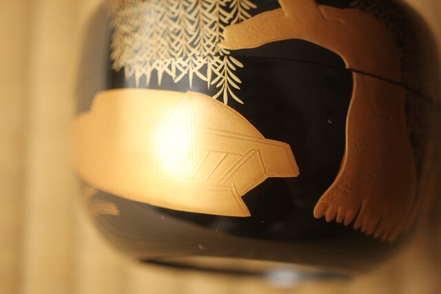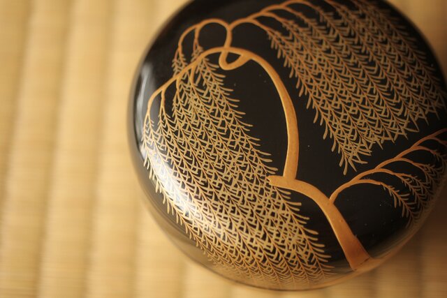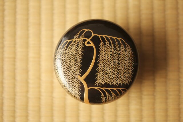 嵯峨蒔絵意匠 柳蒔絵 平棗 Q419