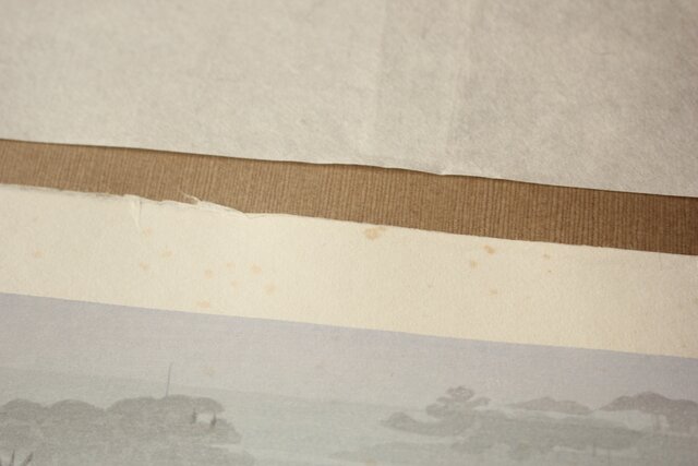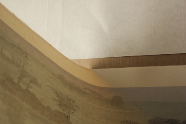 作品の一部が 軽く糊付けされ固定されています 額装の際は取れるくらいの仕様だと思います