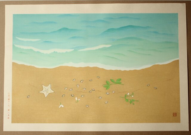 小野竹喬 奥の細道句抄絵 木版画【浪の間や~】Z1011
