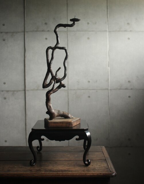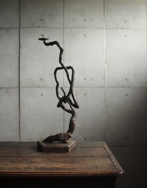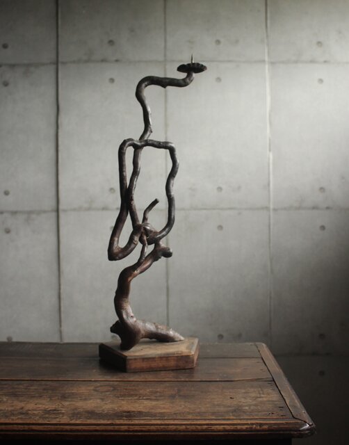 自然木の形状を利用した作られた燭台